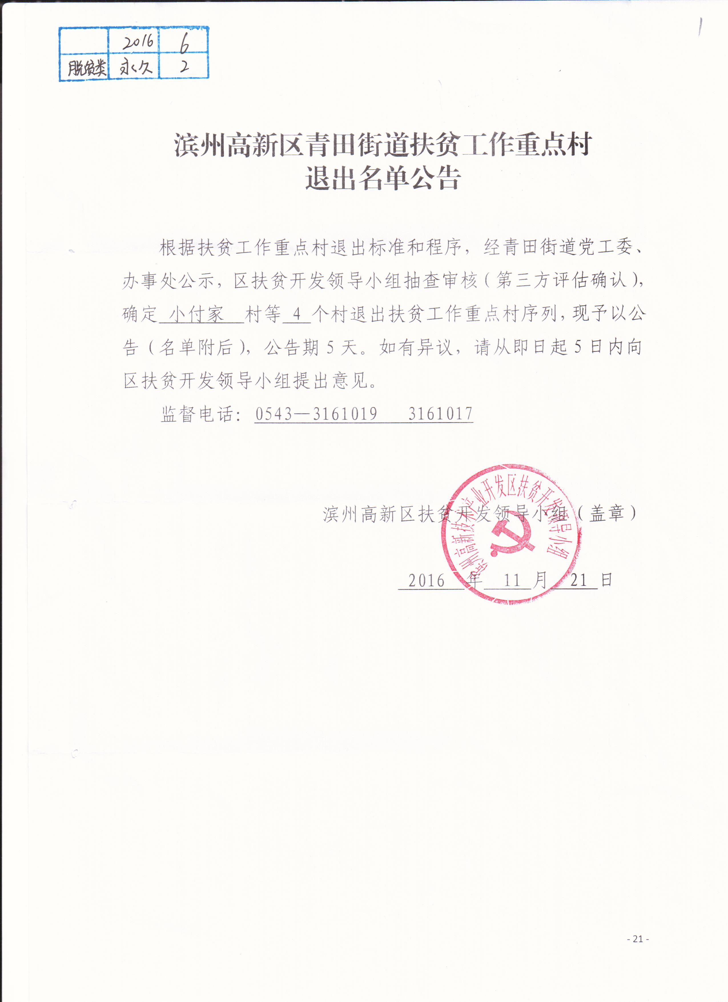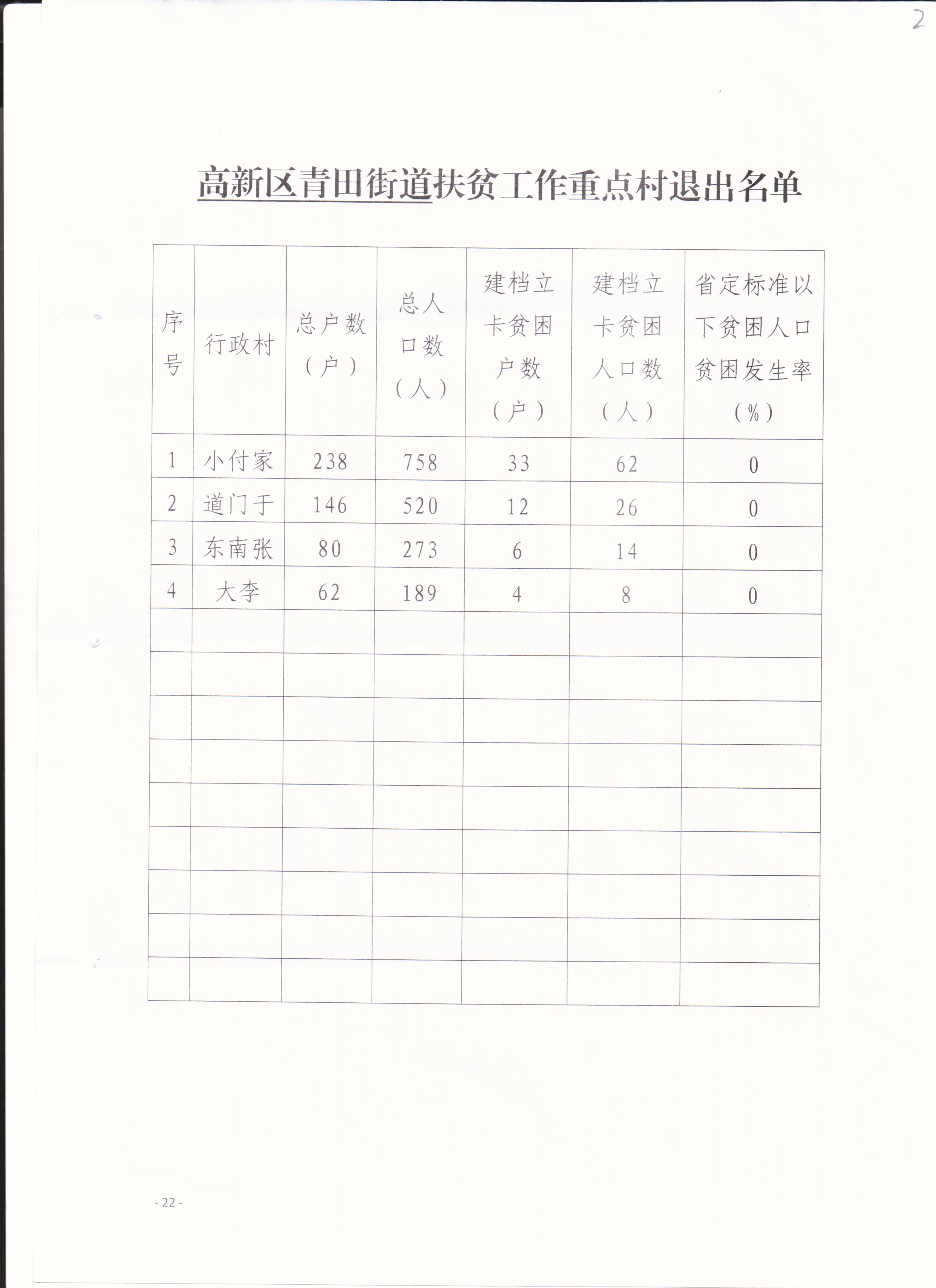 2016年滨州高新区青田街道扶贫工作重点村退出名单公告